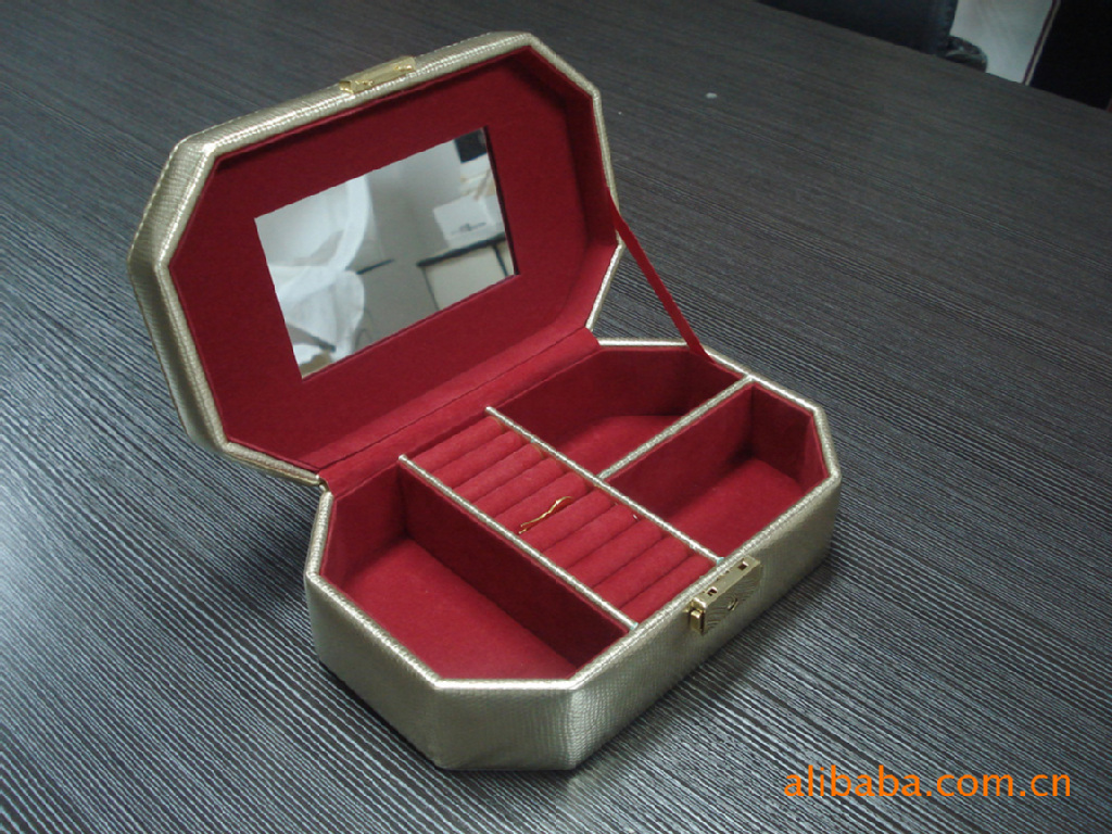 ====产品简介==== | 产品名称:金色饰品盒 | 产品尺寸:220*140*72mm | | 产品包装:根据客户的需求 | 产品属性:皮料、五金、木盒、镜片、绒布、咭纸、海绵 | | 产品特色:我们有专业设计团队、可根据您的要求来改变产品的外观和尺寸 | 产品功能:装各类珠宝饰品 |