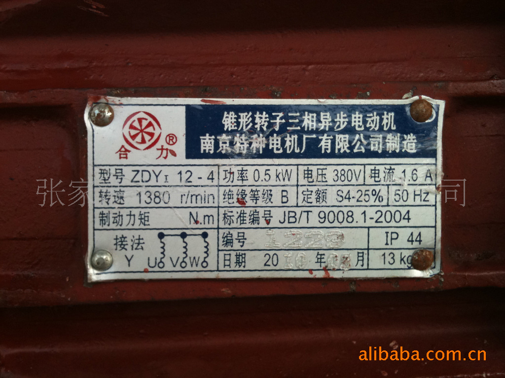 南京特种电动机厂有限公司ZDY12-4 0.5KW电动机专业配套江阴凯澄5T、10吨电动葫芦左右行走电机。法兰盘直径为140mm; 立式安装形式;为国内质量最好的起重用锥形转子电动机生产厂家;通用南京江陵产,南京起重电机总厂产。