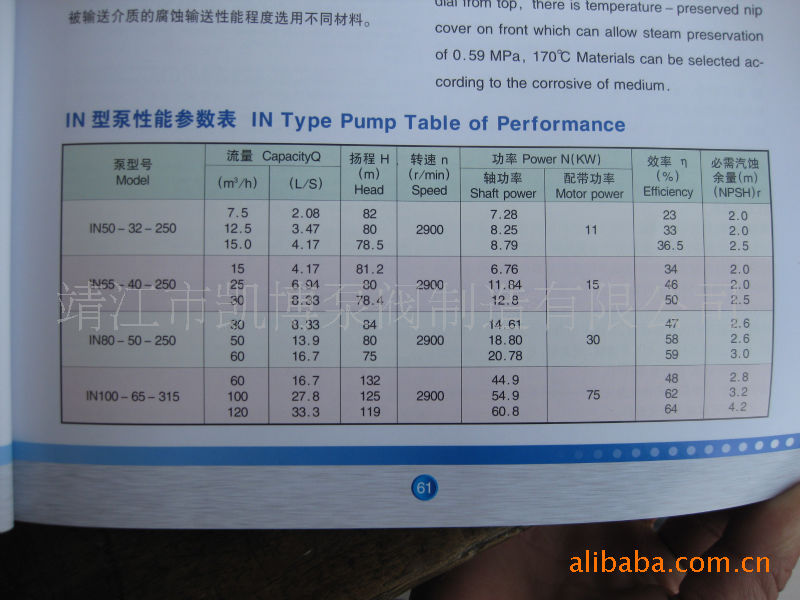泵型号意义:IN50-32-250A