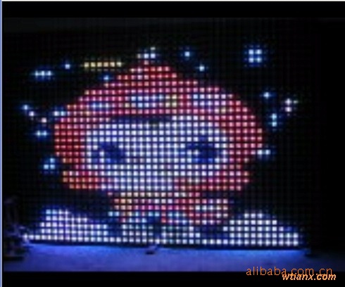 每个光源可作为一个独立的24位色像素点。配合自有的灯光管理工具及相应的控制系统,可实现视频,动画的播放以及文字显示等功能。产品适用于超大屏幕,球形及其他异形屏幕,以及招牌字,LOGO屏,轮廓勾边等应用。
