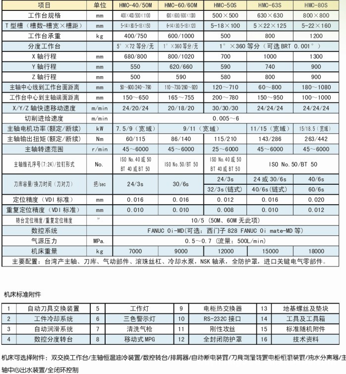 HMC-50M/60M为矩形工作台卧式数控铣床或加工中心,特别适合于长杆、工作高度高、模具型腔类零部件加工。为矩、C精,。级心准设