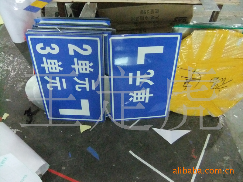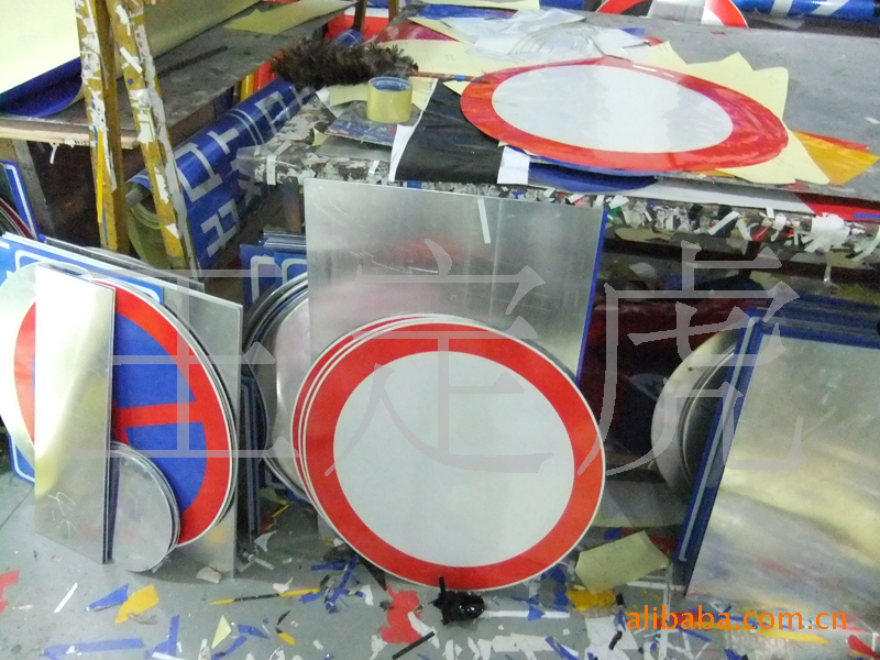 (1)1.2MM厚铝板.按国标图案贴好反光膜(反光膜可 保3-5年不脱落不退色)标牌制作单价为:200元/平方