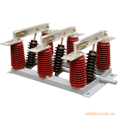 GN19-12ST/400、630、1000、1250型隔离开关的每相导电部分通过三个支柱绝缘子固定在底架上,GN19-10CST/400、630、1000、1250型三相平行安装,导电部分由触刀和静触头组成,每相触刀中间均连有拉杆绝缘子,拉杆绝缘子与安装在底架上的主轴相连,主轴通过拐臂与连杆和CS6-1(T)型操动机构相连,操动机构与连动杆(用户自备)接至辅助开关一起连动。