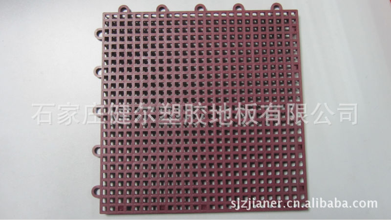 10、性价比高:悬浮式拼装运动地板目前在同类产品当中性价比最高,使用该产品投资少(基本不需要重新做基础)、维护成本低、档次高(超过50多位NBA巨星私人训练场地都使用该种产品铺设的地板,乔丹一人就铺设了6块场地)、见效快(铺装画线完成即可使用),是各类运动场地铺设的最佳选择。初始建设费用+零维护费(只需用清水冲洗即可,没有任何负面作用。),使用寿命长达10年,不褪色不变形。场地划线用漆使用聚丙稀面层专用漆,不脱落。
