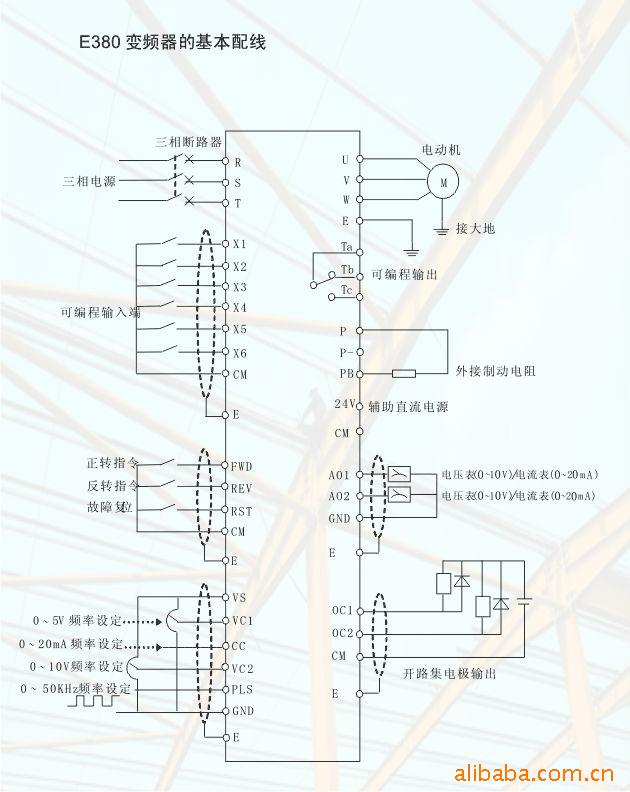 变频器提供幅度可调的三路模拟信号输入通道,和两路模拟信号输出通道。用户可根据要求选择电流、电压信号控制,或向其他设备输出电流、电压信号。