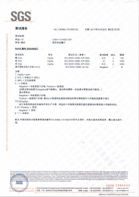 我司初效油烟滤网(方形)的RoHS检测报告: