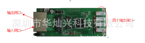 5.一块接收卡控制端口数1-4任意,联机使用时最多控制3412个像素点,每个端口最多控制的像素点数为3412除以实际使用端口数;脱机使用时最多控制2560个像素点,每个端口最多控制的像素点数为2560除以实际使用端口数。在使用一个端口时,四个端口输出一样;在使用两个端口时,第三口与第一口输出一样,第四口与第二口输出一样。
