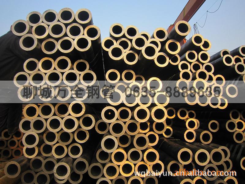 我聊城钢管公司不仅自身生产钢管,还长年直销天津无缝钢管厂、成都无缝管厂、宝钢无缝钢管厂、衡阳无缝钢管厂、无锡无缝钢管厂、天津小无缝钢管厂、冶钢无缝钢管厂、鞍钢无缝钢管厂、包钢无缝钢管厂等厂生产的优质合金钢管、无缝钢管、厚壁钢管、大口径无缝钢管。我公司库存现货为∮4mm-426mm×1mm-80mm。材质有:20#、35#、45#、27SiMn、20Cr、40Cr、20CrMo、30CrMo、35crMo、42CrMO、38CrMo、30CrMnSi;执行标准为GB/T8162-2008、GB/T8163-2008、GB/T3087-2008、GB/T5310-2008、GB/T6479-2008、GB/T9948-2008、GB/T5312-2008等,也可按客户要求及时定做美标、日标、德标等标准钢管。
