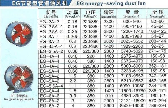 EG系列具有噪声低,风量大在、耗电少、结构合理等特点。是目前化工、轻工、民用建筑、高级宾馆等部门新选用的理想配套设备。本系列风机适用于工矿企业、民用建筑、车间仓库等场所作防暑降温、通风换气使用或用于一般工业管道加压、送风、排风、屋顶通风使用。