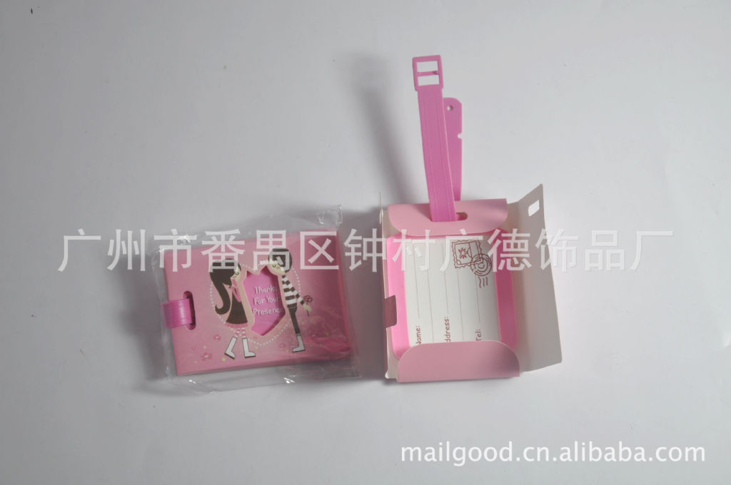 PVC行李牌,主要材质为PVC,工艺为点胶(微量射出),大小规格可根据客户要求制作,LOGO可以做2D或3D效果, 也可以丝网印刷;价格优惠,背面塑料框,塑胶挂绳,款式新颖,图案精美,色彩艳丽,可根据客户的不同要求制作各种卡通形状, 形象逼真,是各企业促销活动之理想选择,欢迎随时来电来函咨询及订购,我们热诚期待着您的友好合作. 行李牌”指识别行李的标志和旅客领取托运行李的凭证。 或者迷你可爱的卡通图。 硬pvc行李牌片 软pvc行李牌 电压行李牌:单面PVC片印刷+中间海绵+背面透明PVC片高频压边