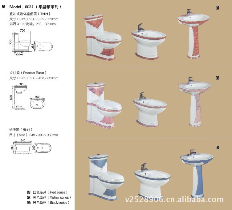 尺寸 | Toilet size:650*410*825MM Pedestal Basin size:720*515*875MM Bidet size:575*365*416MM |