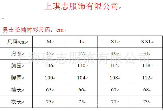公司名称:上海琪志服饰有限公司 电话:86-021-61994600