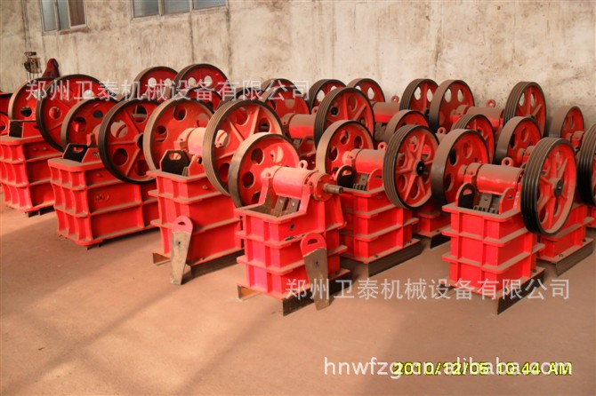 鄂式破碎机是出现较早的破碎设备,因其构造简单、坚固、工作可靠、维护和检修容易以及生产和建设费用比较少,因此,直到现在仍然广泛地在冶金、化工、建材、电力、交通等工业部门,用于破碎抗压强度在147~245MPa的各种矿石和岩石的粗、中、细碎。近年来,我厂为满足冶金、矿山、建筑等工业部门破碎高强度、高硬度的微碳铬铁的需要,专门研制了强力颚式破碎机。