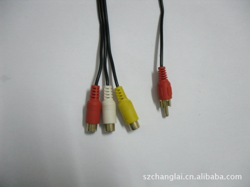RCA俗称莲花插座,几乎所有的电视机、影碟机类产品都有这个接口。它并不是专门为哪一种接口设计,既可以用在音频,又可以用在普通的视频信号,也是DVD分量(YCrCb)的插座,只不过数量是三个。 RCA接头是目前为止最为常见的一种音/视频接线端子。这种双线连接方式的端子早在收音机出现的时代便由RCA录音公司发明出来,还有一个更老式、也比较奇怪的称呼叫做“唱盘”接头。 RCA端子采用同轴传输信号的方式,中轴用来传输信号,外沿一圈的接触层用来接地,可以用来传输数字音频信号和模拟视频信号。RCA音频端子一般成对地用不同颜色标注:右声道用红色,左声道用黑色或白色。有的时候,中置和环绕声道连接线会用其他的颜色标注来方便接线时区分,但整个系统中所有的RCA接头在电气性能上都是一样的。一般来讲,RCA立体声音频线都是左右声道为一组,每声道外观上是一根线。