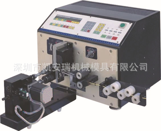 最近电子产品,倾向轻、薄、短、小之要求,故所需要电线也越向细线、短线及高精度,本机正好能发挥其最大长处。以往被视为很难加工的50mm之内的短线,现在并无任何困难,甚至总长度仅有1mm时,两端亦可同时各剥0.3mm,同时可分别设定送线,进刀、退刀、再脱皮及脱皮速度,另扭线同一时间完成。扭线长度0.1-99mm(视线材而定)对于隔离线亦可强制脱皮到99mm,排除了以往隔离线不能全剥机伤到芯线的困难。 显示屏一目了然,所设定之长处清楚的显示在液晶板上,各种线材粗细,尺寸,均由按钮设定,能够轻易的设定出所需加工线材的尺寸,即使有设定错误的情况发生时,电脑也能立刻警示,并指示在何处设定错误,再进行修正即可。所需线材的数量也可设定总数、把数,并可清楚的显示出来。可二条线同时加工,短线、细线、超高精度裁线功能,可同时加工二条电线,产量大幅度提高。二条线同时切断,同时剥皮为最先进机种,同时亦可只做一条,对于剪样本及大量生产时可应付自如。