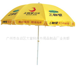 小编寄语:广告伞(太阳伞)作为一种现代新颖的广告媒体,具有流动性大、实用性强和良好的视觉 效果等优点,艳丽醒目的广告伞(太阳伞)既美化了城市乡村,又开辟了各商家的潜在市场,为其获得巨大的经济效益起到了积极作用。公司先后为国内著名厂商制 作过广告伞(太阳伞),如百事可乐、可口可乐、雪碧、芬达、哇哈哈、乐百氏、蒙牛、青岛啤酒、华润雪花啤酒、康师傅系列、传化、德克土等等。