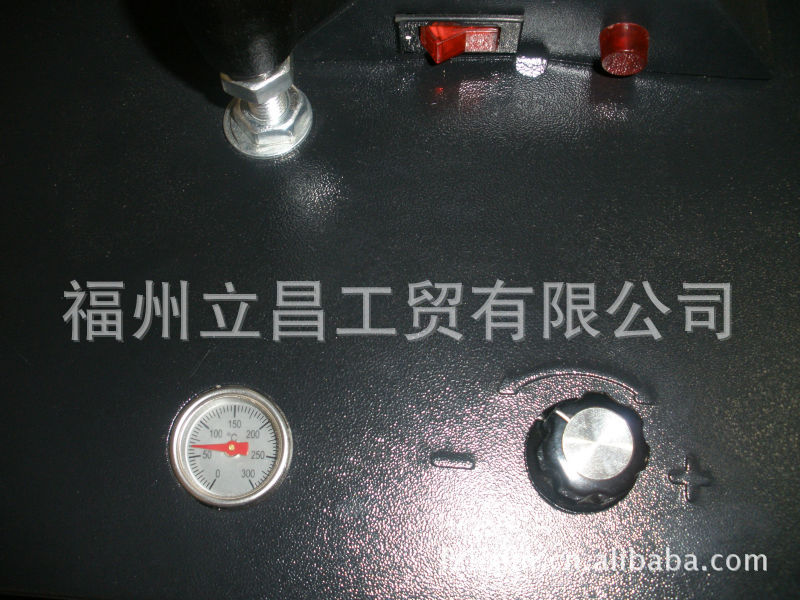 提起手把,使机器成张开状。将上部摆向一边,露出工作台,在工作平台上放上要烫印的物体,测试压力是否合适,如不合适,需调节压力旋钮。(顺时针旋转旋钮为加大压力,逆时针旋转为减小压力)
