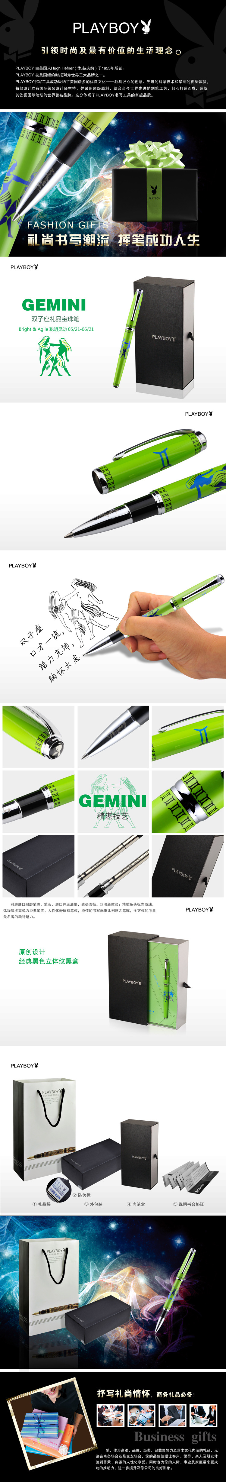 | 品名 | 美国-花花公子星座72系列双子座经典绿白夹宝珠笔 |