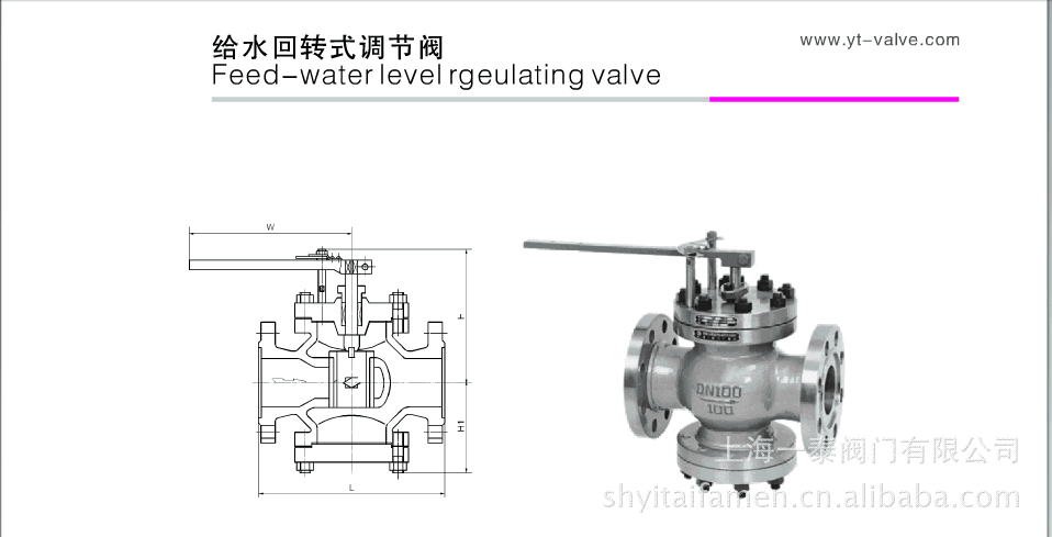给水回转式调节阀适用于中、低压锅炉给水管道和高压加热器疏水管上,通过转动圆筒形阀瓣使其与阀座形成的窗口面积改变,从而实现调节流量的目的。调节阀的回转启闭角度为60度,由调节阀上方的开度指示板来指示。可配用电动执行装置,实行远程自动化操作。