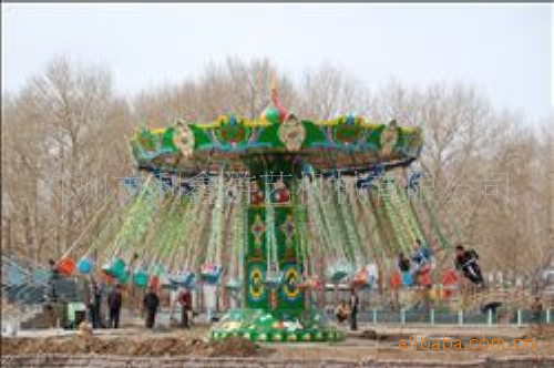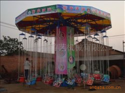 郑州利鑫游乐设备豪华飞椅游艺机是飞行塔类游艺机中的一个品种。造型取意新、气势雄伟、壮观、趣味性强,融惊险性与趣味性为一体。游人在悬挂的座椅中随着回转盘倾斜回转和中心转体的相对转动,飞上旋下,好不惊险刺激,亲身一试方能体验它的无穷乐趣。旋转飞椅象是一把能摇头的大伞下吊着很多把靓丽、精致、安全的吊椅,在大伞转动(或摇头)时,吊椅在空中波浪起伏地旋转飞舞。此时承坐在吊椅上的游客,充满刺激、浪漫的感觉。