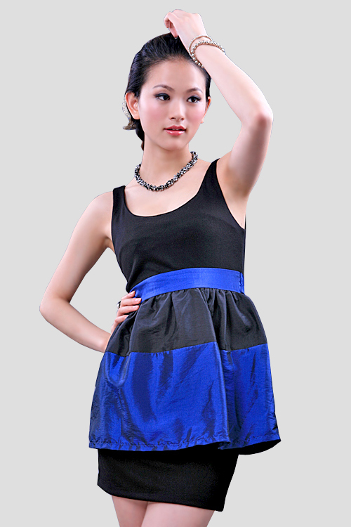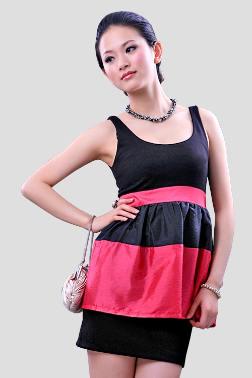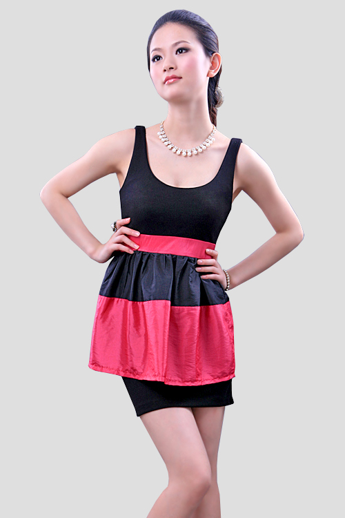2011夏季新款韩版连衣裙 圆领百褶拼接连衣裙8867