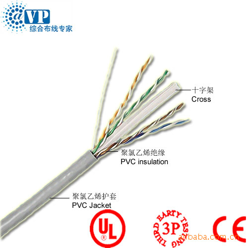 六类非屏蔽线缆根据最新六类标准,采用新扭十字架隔板设计的高性能UTP双绞线,具有优秀的传输性能,由23AWG祼铜芯导体组成,外包阻燃PVC护套