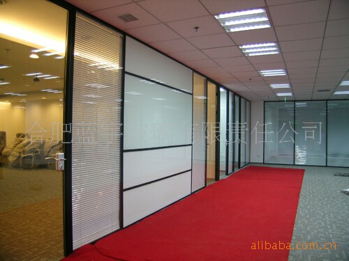 办公空间室内装潢快速化、系统化、工业化、灵活重组化、环保化、装饰可移资产化这是隔断墙体系列产品的六大优势。产品满足了建筑物理隔音、稳定性、防火、安全性环保等方面的所需要求。公司主要生产与销售:玻璃隔断,玻璃隔断墙,办公室隔断,双玻百叶隔断,屏风隔断,酒店隔断,高隔断,固定隔断,内置百叶隔断,活动隔断,単玻隔断,移动隔墙,移动玻璃隔断,活动玻璃隔断,高隔间,多功能厅隔间等等,活动隔断系列广泛用于会议室,酒楼,酒店,多功能厅,宾馆,展厅等场所;玻璃隔断系列多用于写字楼,金融机构,政府办公,医院,工厂、研发中心、实验室、机场等场所;门窗系列用于别墅,高级公寓等家庭场所。 办公空间室内装潢快速化、系统化、工业化、灵活重组化、环保化、装饰可移资产化这是隔断墙体系列产品的六大优势。产品满足了建筑物理隔音、稳定性、防火、安全性环保等方面的所需要求。公司主要生产与销售:玻璃隔断,玻璃隔断墙,办公室隔断,双玻百叶隔断,屏风隔断,酒店隔断,高隔断,固定隔断,内置百叶隔断,活动隔断,単玻隔断,移动隔墙,移动玻璃隔断,活动玻璃隔断,高隔间,多功能厅隔间等等,活动隔断系列广泛用于会议室,酒楼,酒店,多功能厅,宾馆,展厅等场所;玻璃隔断系列多用于写字楼,金融机构,政府办公,医院,工厂、研发中心、实验室、机场等场所;门窗系列用于别墅,高级公寓等家庭场所。 | | 墙体厚度规格:80㎜、90㎜、100㎜ 铝框型材颜色:氧化铝本色、白色、银灰色、定制喷涂客户所需色 百叶帘片宽度:16㎜、25㎜ 百叶帘颜色: 横式金属百叶帘,颜色可根据型材颜色搭配。 百叶使用方式:手动外置旋钮、电动调光、电动升降 玻璃选择: 钢化玻璃、磨砂玻璃、防火玻璃 玻璃厚度: 5㎜、6㎜、8㎜、10㎜、 防火等级: 甲级防火标准 隔音系数: 42db---52db 双玻百叶系统追求视觉效果与功能应用双重优点,内置百叶开启时展现通透明亮的沟通渠道,闭合时营造出私密的运筹空间。 墙体厚度规格:80㎜、90㎜、100㎜ 铝框型材颜色:氧化铝本色、白色、银灰色、定制喷涂客户所需色 百叶帘片宽度:16㎜、25㎜ 百叶帘颜色: 横式金属百叶帘,颜色可根据型材颜色搭配。 百叶使用方式:手动外置旋钮、电动调光、电动升降 玻璃选择: 钢化玻璃、磨砂玻璃、防火玻璃 玻璃厚度: 5㎜、6㎜、8㎜、10㎜、 防火等级: 甲级防火标准 隔音系数: 42db---52db 双玻百叶系统追求视觉效果与功能应用双重优点,内置百叶开启时展现通透明亮的沟通渠道,闭合时营造出私密的运筹空间。