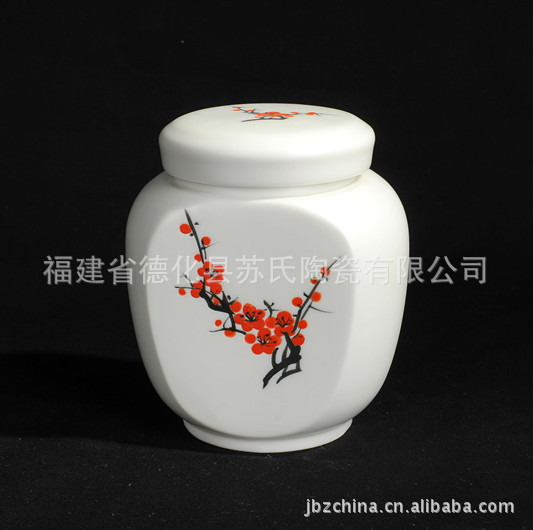 品名:精品手绘陶瓷茶叶罐(本系列有淡菊、绿竹、梅花等花面)