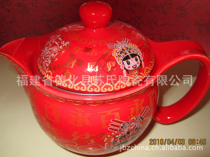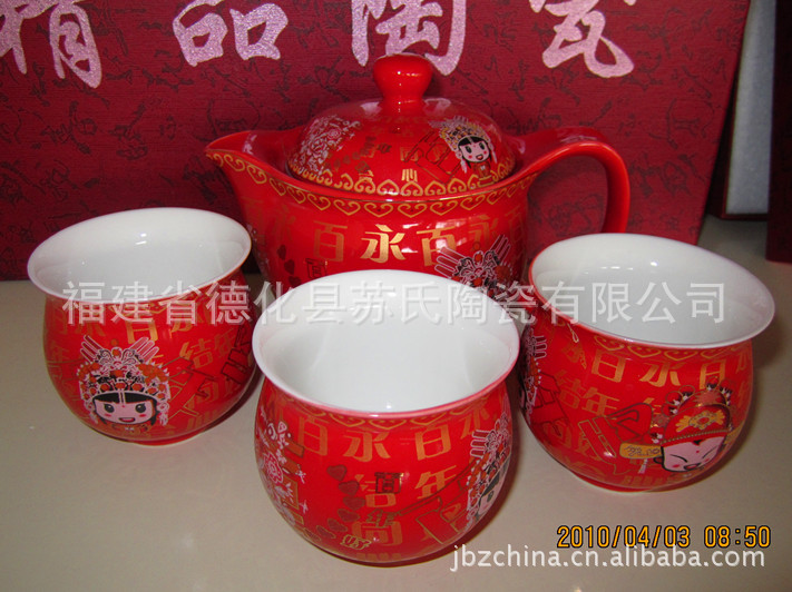 【品名】:7头双层杯精品陶瓷茶具(红双喜)