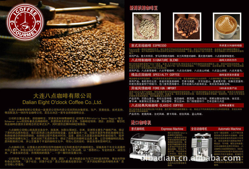 大连八点咖啡有限公司,是一家由美资公司和内资公司共同创办集研发,生产,贸易批发,技术支持,物流配送为一体的专业咖啡公司,是东北地区唯一的一家专业烘焙咖啡的企业。