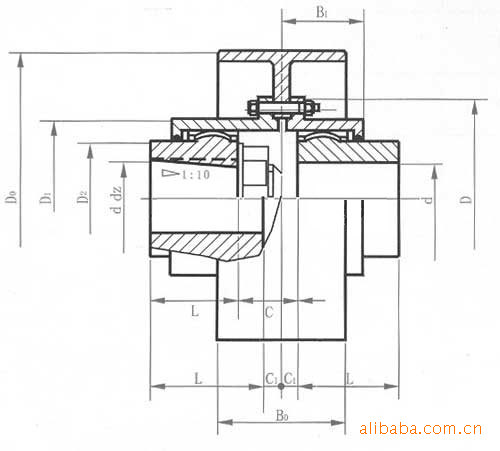 NGCL型鼓形齿式联轴器属于刚挠性连轴器,齿式联轴器是由齿数相同的内齿圈和带外齿的凸缘半连轴器等零件组成。外齿分为直齿和鼓形齿两种齿形,所谓鼓形齿即为将外齿 制成球面,球面中心在齿轮轴线上,齿侧间隙较一般齿轮大,鼓形齿联轴器可允许较大的角位移(相对于直齿联轴器),可改善齿的接触条件,提高传递转矩的能 力,延长使用寿命。具有径向、轴向和角向等轴线偏差补偿能力,具有结构紧凑、回转半径小、承载能力大、传动效率高、噪声低及 维修周期长等优点,特别适用于低速重载工况,如冶金、矿山、起重运输等行业、也适用于石油、化工、通用机械等各类机械的轴系传动。