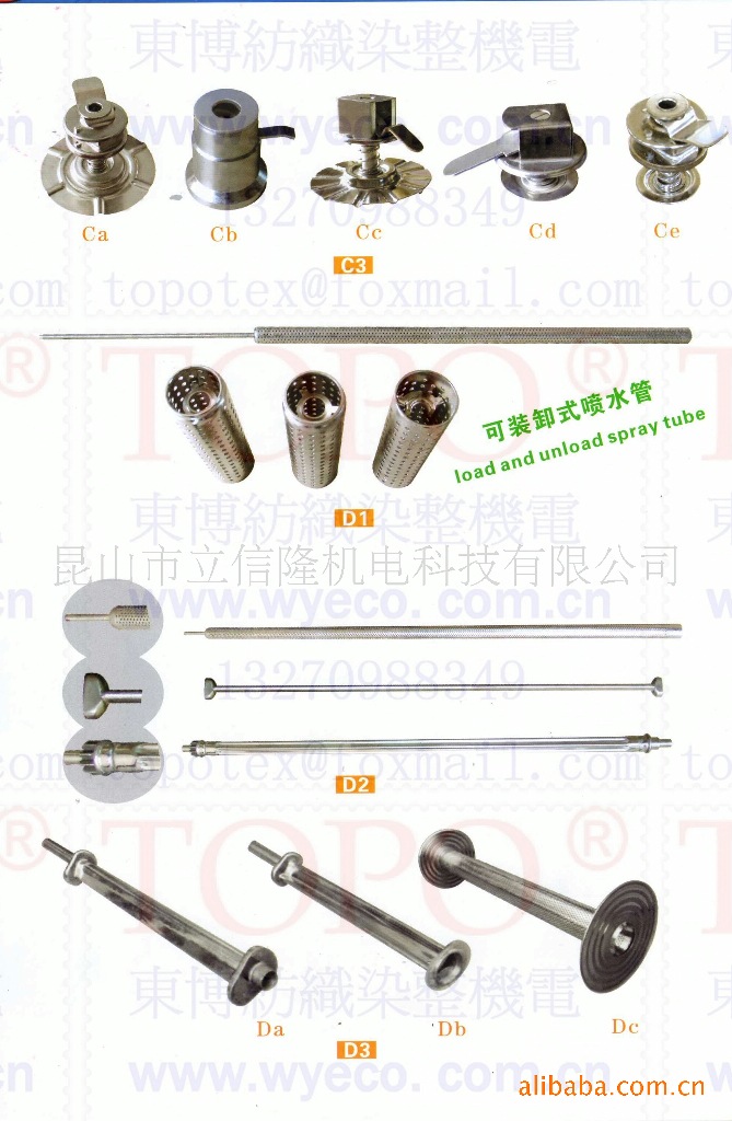 本公司工厂设在昆山,可为香港Gofronts高勋染纱机,香港FONGS立信香港TUNGSHING东成,亚蔡,冯氏,台湾东武,东庚,东霖,无锡东宝,无锡东洲,无锡杨佳,无锡双雄,无锡西塘,前洲印染设备厂等染整机器厂配套各种不锈钢纱管,纱竹等配件。