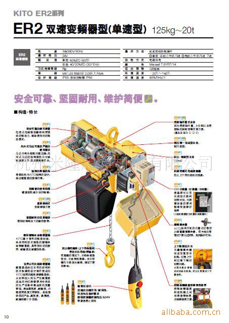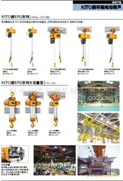 KITO电动葫芦系列能在最大要求的工作环境里提高您的工作效率,这些高品质高性能的最新工业技术产品将满足顾客最大之需求。电动葫芦包括环链电动葫芦和钢丝电动葫芦两种。