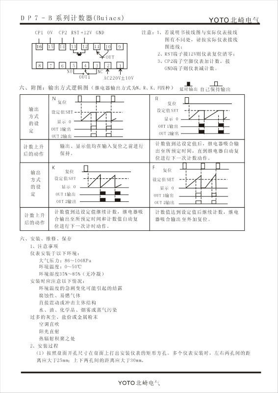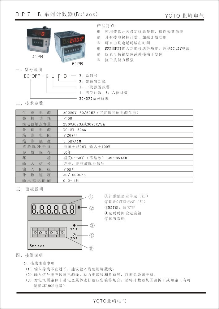 1、DP7-41P:外形尺寸72*72*138,计数范围0—9999,电源电压110V/220V,输出方式R.N.C