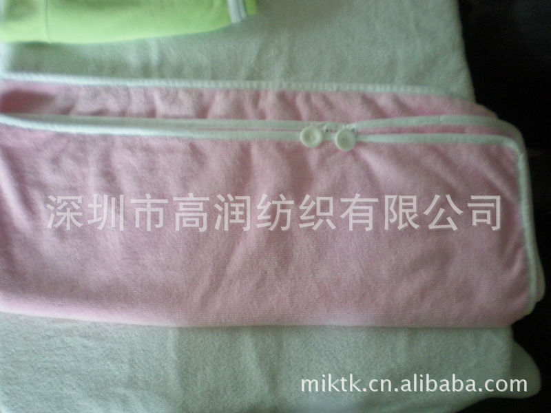 产品价格根据不同规格及材质要求而不同,购买前请先联系我们确认. 毛巾产品种类繁多。 选购要点 选购毛巾要注意这样几点:1、质地为纯棉;2、吸水性要好。品质好的毛巾如果滴上水滴,能迅速吸收,如果用来擦手擦脸的话,能快速擦干水分,去尽尘污;而劣质毛巾擦在脸上滑溜溜的,不吸水,不去污; 超细纤维毛巾 高吸水性:超细纤维采用橘瓣式技术将长丝分为八瓣,使纤维表面积增大,织物中孔隙增多,借助毛细管芯吸效应增强吸水效果。快速吸水和快速变干成为它的显着特性。 强去污力:纤维细度为真丝1/10,头发丝的1/200,其特殊的横断面能更有效地捕获小至几微米的尘埃颗粒,除污,去油效果十分明显。 不脱毛:高强的合纤长丝,不易断裂,同时采用精编织法,不抽丝,不脱圈,纤维也不易从毛巾表面脱落。用它做成清洁巾,擦车巾,特别适合擦拭光亮油漆表面,电镀表面,玻璃,仪表及液晶屏等,在汽车贴膜过程中对玻璃做清洁处理,可达到非常理想的贴膜效果。 长寿命:由于超细纤维强度大,韧性强,因此它的使用寿命是普通毛巾使用寿命的四倍以上,多次水洗后不变形,同时,高分子聚合纤维不会像棉纤维那样产生蛋白质水解,即使用后不凉晒,也不会发霉,腐烂,具有超长寿命。 易清洗:普通毛巾使用时,特别是天然纤维毛巾,将被擦物体表面的灰尘,油脂,污垢等直接吸收到纤维内部使用后残留于纤维之中,不易清除,用了较长时间后甚至会变硬失去弹性,影响使用。而超细纤维毛巾是把污物吸附于纤维之间(不是纤维内部),再加之纤维纤度高,密度大,因此吸附能力强,使用后只需用清水或稍加洗涤剂清洗即可。 不掉色:染色工序采用TF-215等针对超细纤维材料的染剂,其缓染性,移染性,高温分散性,消色性指标均达到出口国际市场的严格标准,特别是其不掉色的优点,使其在清洁物品表面时完全不会带来脱色污染的烦恼。 使用小贴士 ●毛巾应及时更换。任何产品都有使用期限,毛巾为纤维织物,属有机物,其使用期限一般为3个月。 消毒小贴士 毛巾上常常沾染有人体分泌物,这其中就有许多的致病性微生物,如沙眼衣原体、金黄色葡萄球菌、淋球茵及霉菌等,因此,提倡每星期消毒。消毒方法有以下几种: |