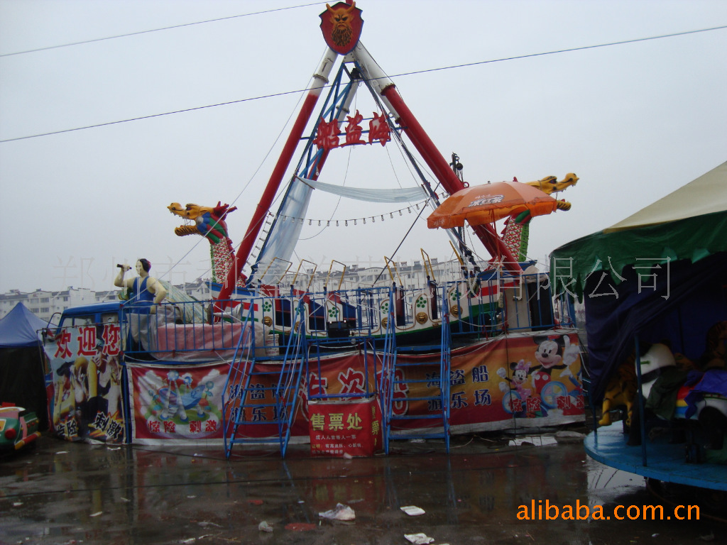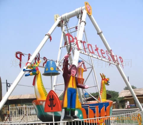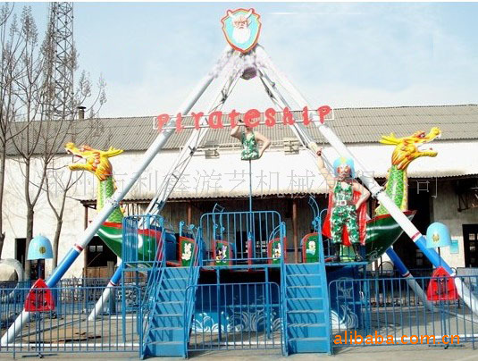 游乐设备“海盗船”是水平轴往复摆动类的游乐项目,乘客乘坐于海盗船之上,随之由缓至急的往复摆动,犹如莅临惊涛骇浪的大海之中,时而冲上浪峰,时而跌入谷底,惊险刺激,极具娱乐性。