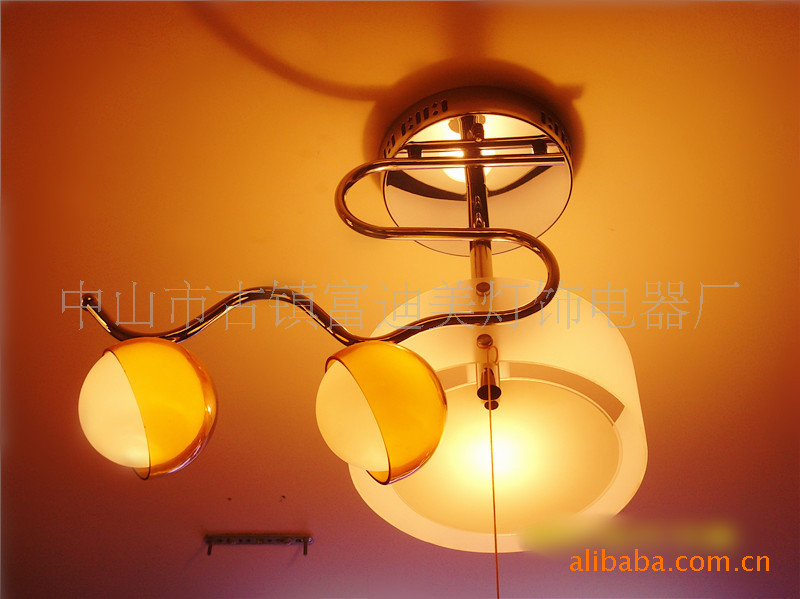 | 灯体材质:镀烙底盘及五金 亚克力打砂及玻璃灯罩 | 特点:时尚简约 节能实用 清洁简易 |