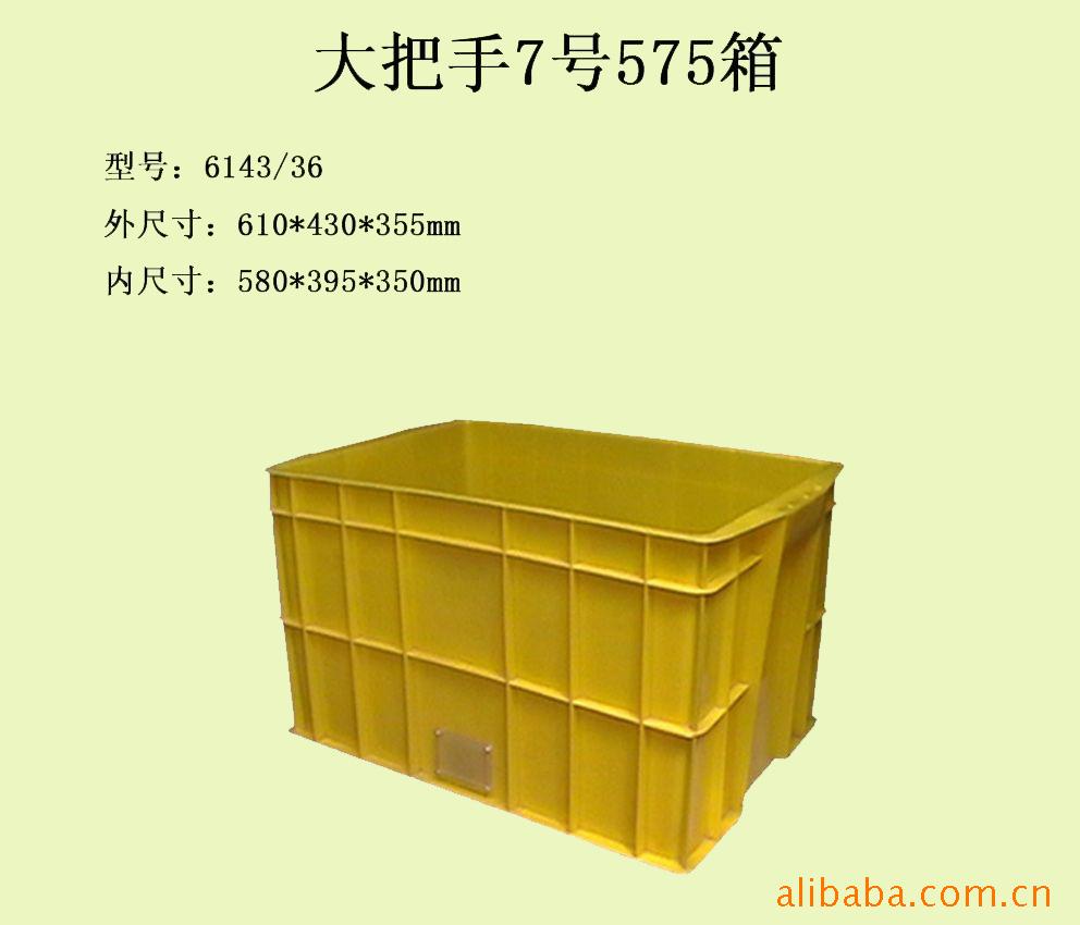 575系列箱是通用周转箱,本系列产品共有9款产品(1号575箱, 2号575箱,3号575箱,4号575箱,5号575箱,6号575箱,7号575箱,8号575箱,大把手7号575箱),产品广泛应用于服装、五金、机械、电子、化工、仪表、养殖业、食品、水产、物流仓储等行业使用 7号575箱