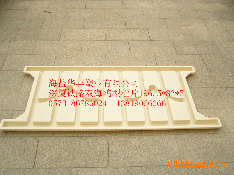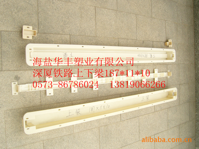 近年来,公司主打高铁路基护栏、桥梁护栏塑模和钢丝网立柱模、U型槽、E型槽、RPC盖板、混凝土盖板、遮板、路肩、六角护坡、边沟板等塑模,高铁专用排水管件等塑件,离心机、加料机、平振台等配套机械。为配合中国高铁建设发展,公司根据铁道部勘察设计院(2006.8001——2010.8001)等系列图纸,巨资研发了各种标准型(1.84米),加高型(2.2米)(二片式、三片式、四片式),防护栅栏系列成套塑模,2009年新增了AB型四片标准型、加长型路基防护栅栏塑模和一系列海鸥式(A片、B片),栏片式、罗马柱式桥梁防护栏塑模。