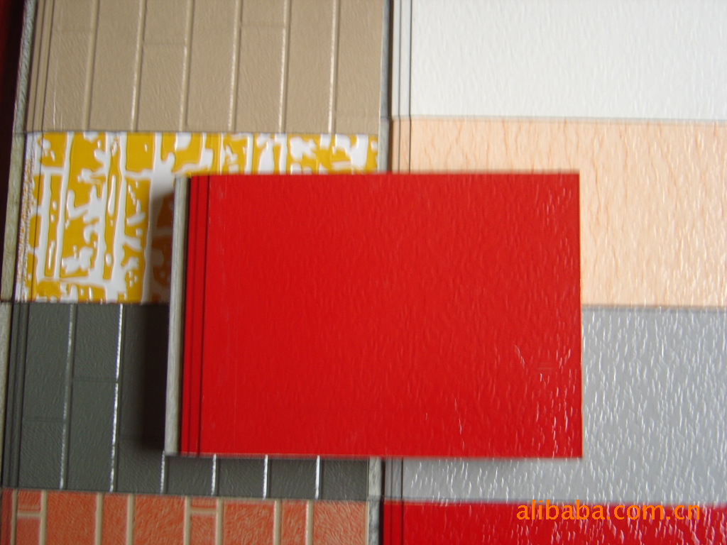 新型金属雕花板 新型金属雕花板又名金属装饰保温板,由镀铝锌合金钢板、高耐候烤漆、硬质发泡聚氨酯和玻璃纤维布复合而成,表面通过金属压花和烤漆工艺,形成文化石、马赛克、大理石、红木纹等多种艺术装饰效果,三百多种颜色可供选择。