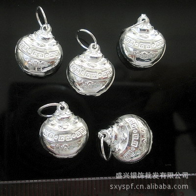 盛兴银饰批发 S990纯银配件铃铛心型吊坠