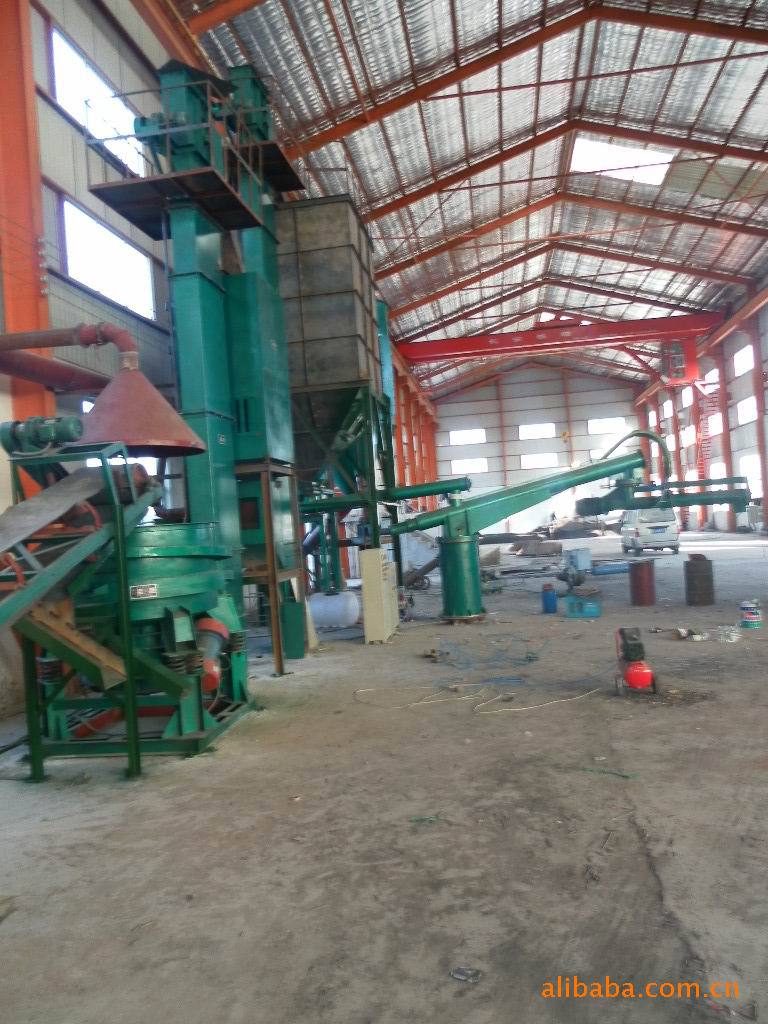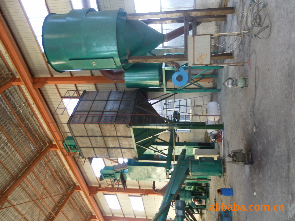 树脂砂生产线是由磁选皮带输送机、震动破碎再生机、离心转子二次二级再生机、砂库、斗式提升机(3套)、移动双臂连续式树脂砂混砂机、脉冲反吹式除尘器等设备组成的。