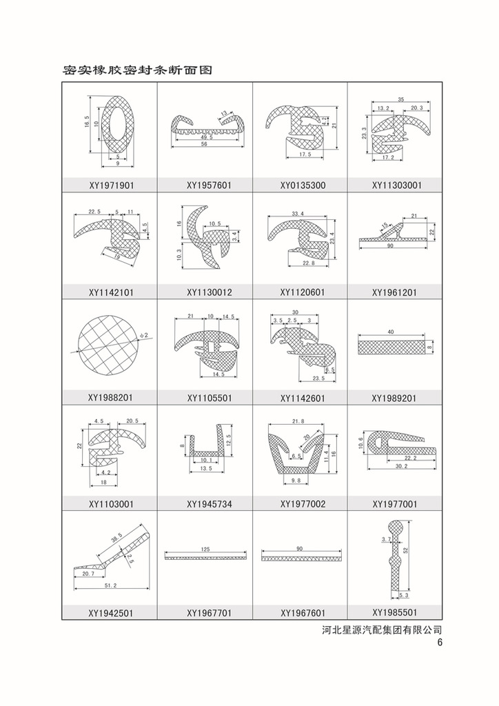 密实橡胶密封条断面图Denserubbersealingstripprofile
