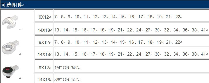 *头部可选:方头、开口头和梅花头。扳手不含任何头部,用户可根据需要另行配置,价格另算。