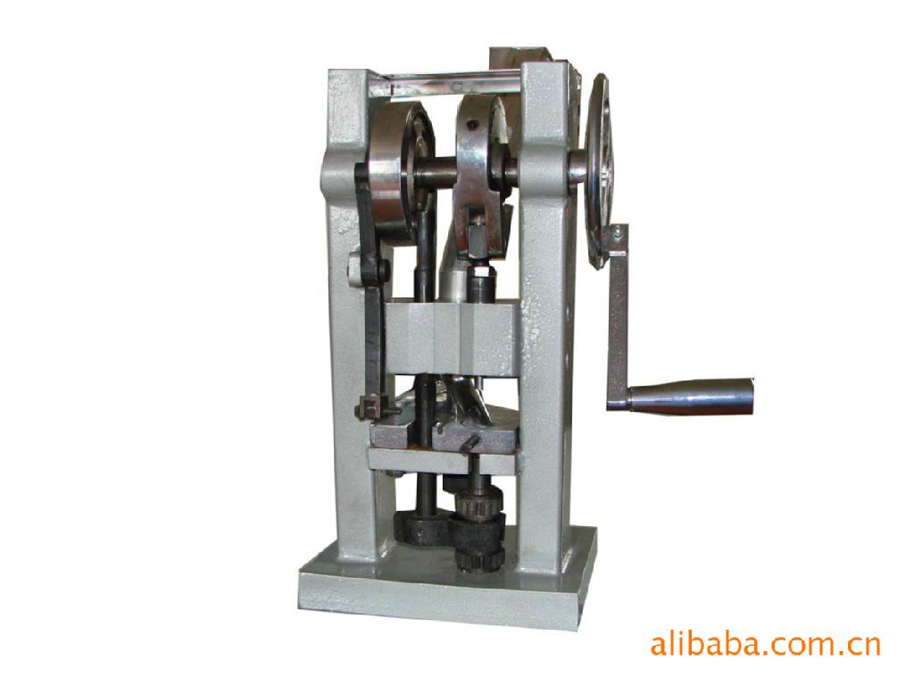 本机是手摇式单冲压片机,没有电机传动,无需电源。用以将各种颗粒状原料压制成圆片,适用于实验室试制、教学、小规模生产各种药片、糖片、钙片等,是一种小型台式连续压片的机器,性能优良,适应性强,使用方便,易于维修,体积小,重量轻,机上只可装一付冲模,物料的充填深度压片厚度均可调节。