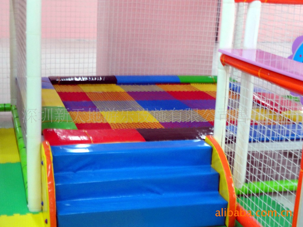 3、彩虹天梯:内部为木制,中间包重泡海绵(符合GB6675-2003标准),最外层包一层进口超强PVC经纬编织闪光革,强度高,安全性能优良,安装时倾角小于30度,符合国家标准。