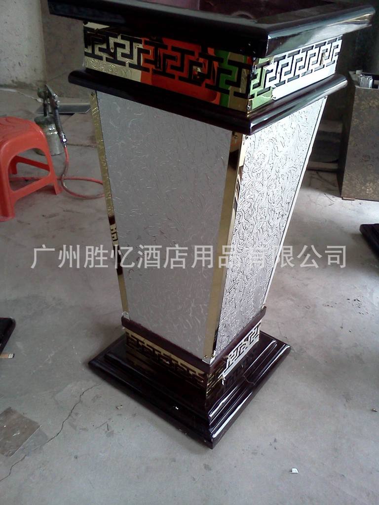 材质是木外面加钛金配件,皮纹可互换,四角有一条钛金条压制。此产品用于酒店大堂,高档精美!厂家直销,欢迎来线订购:400-028-9969