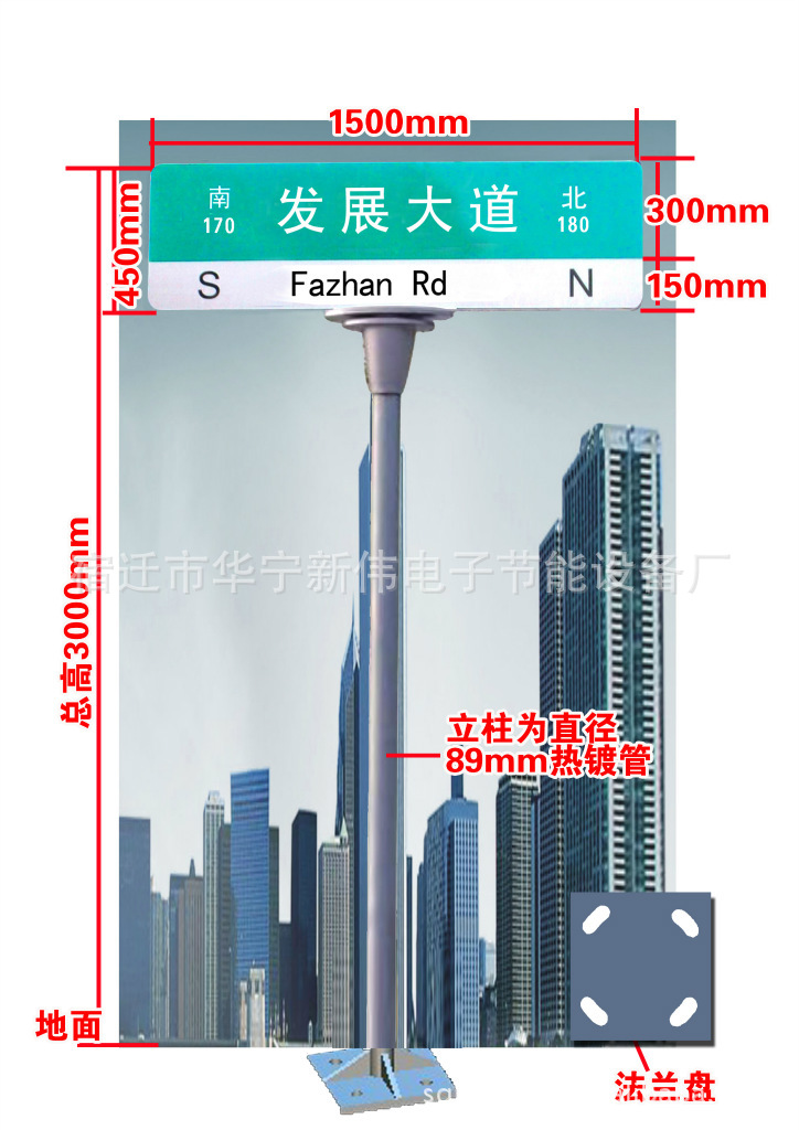 江苏华宁新伟电子专业产生城市\乡镇\标准路,地\指路牌\采用钢板喷塑和特制铝合金喷塑.欢迎各地前来订购.