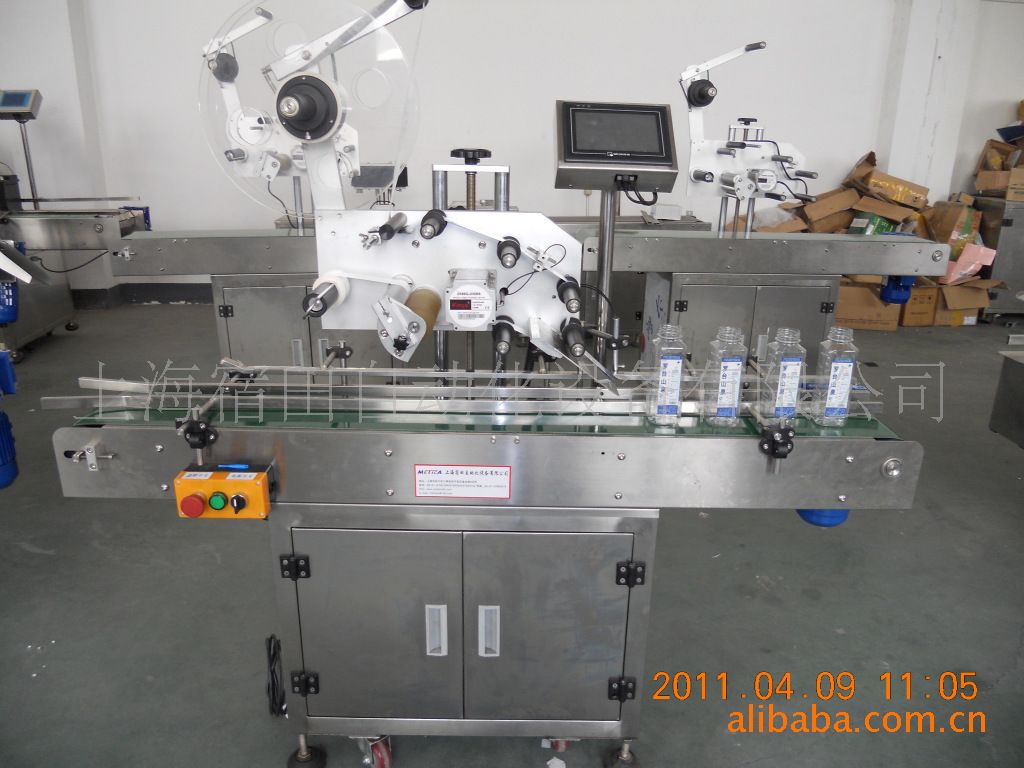*机械结构微型设计,占用空间少,设备移动和在流水线中安置方便;*采用产品导向间隙消除机构和标签防走偏机构,贴标定位精度高达±0.5mm;*贴标稳定性好,贴标平整、不起皱、无气泡,可满足大部分产品平面和大弧度面上有要求的贴标;*机械调整部分结构化组合和标签卷绕的巧妙设计,贴标位置自由度微调方便(调整后可固定),使不同产品之间的转换和标签卷绕变得简单、省时;*具备无物不贴标,无标自动校正和自动检测功能;*设备主要材料采用不锈钢和高级铝合金,整体结构牢固,美观大方;*采用标准PLC+触摸屏+步进电机+标准传感器电控系统控制,安全系数高,人机交互界面全中文注释和完善的故障处理提示功能、操作教导功能;使用方便,维护简单;*完善的设备配套资料(包括设备结构,原理,操作,保养,维修,升级等说明资料),给设备正常运作提供充分保障;*具有生产计数功能,省电功能(设定时间内无贴标时,设备自动转到省电待机状态),生产数设定提示功能,参数设置保护功能(参数设置分权限管理);*可选配功能:①热打码/喷码功能②自动上料功能(结合产品考虑)③自动收料功能(结合产品考虑)④增加贴标装置⑤其他功能(按客户要求订做)。