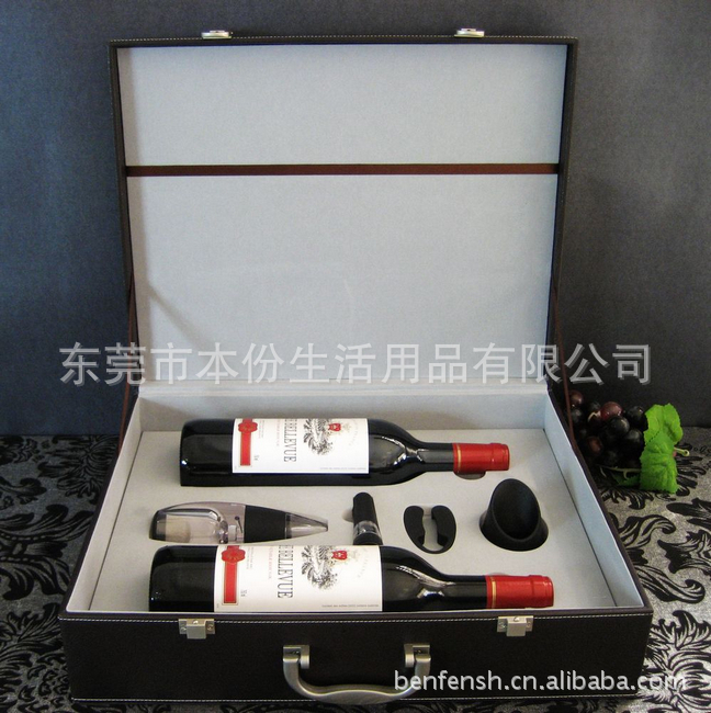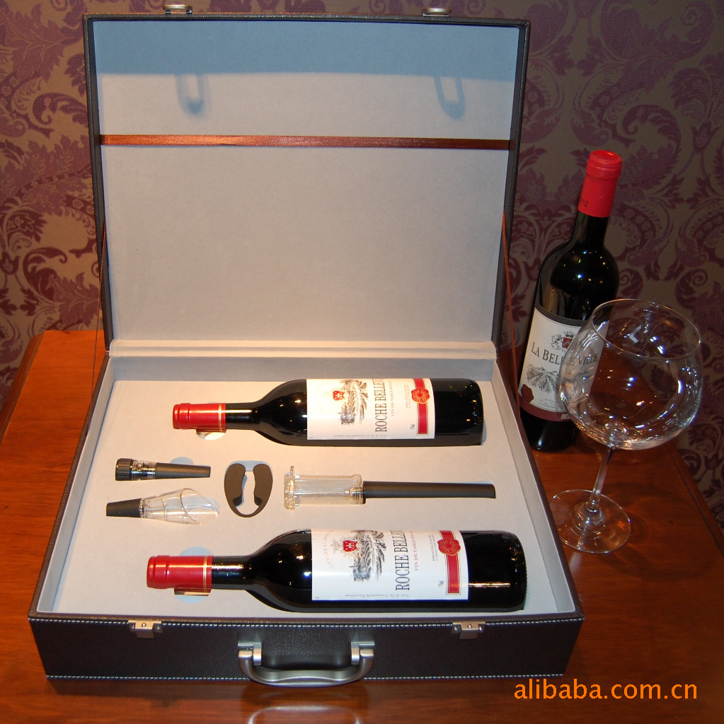 双支含酒具配件 高档皮质红酒盒,木盒 葡萄酒盒 皮质酒箱